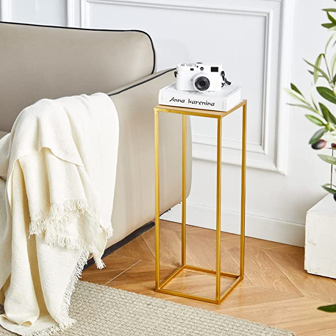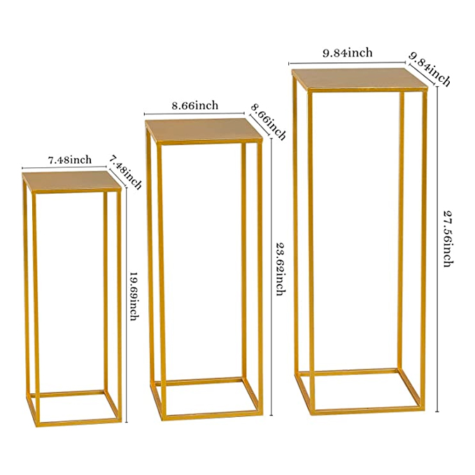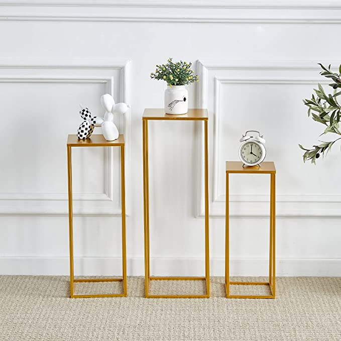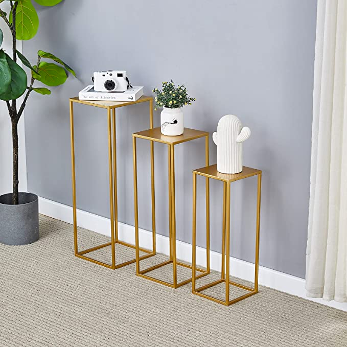 27.55″ Set of 3 Metal Plant Stand Black Nesting Display End Table Square Gold