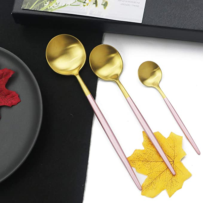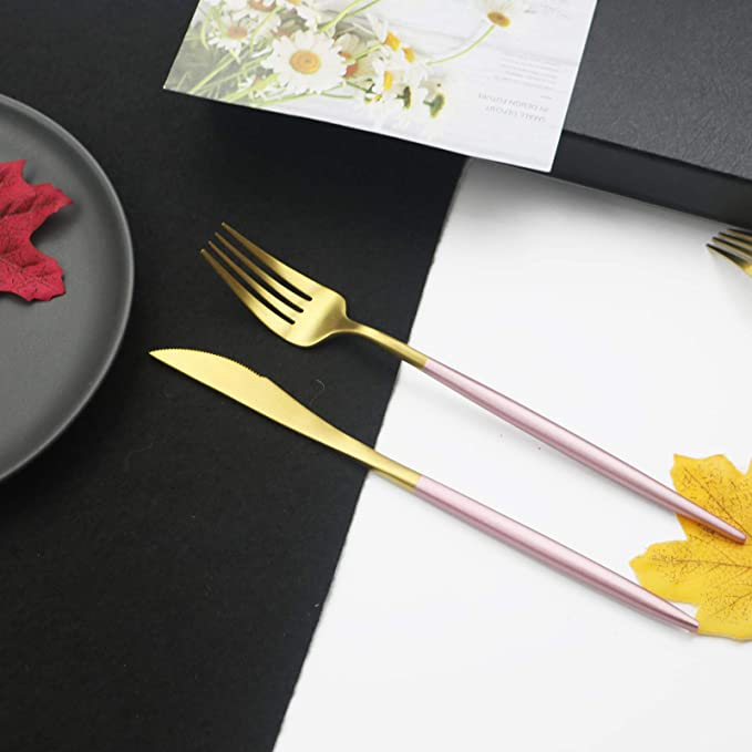 Made of high quality 18/10 stainless steel material,sturdy and durable,heat-resistant, anti-rust with a brushed finish, smooth edge no rough spot.We have thoroughly tested our dinnerware to make sure that your family will be able to enjoy dinner with style!Our utensils include 1 set of knives, different sized spoons, different sized forks! We want your family to enjoy this 6 pcs set every night for dinner! Unique Design: Attractive and simple design with clean lines will match with your existing flatware more naturally and also make a nice addition to your kitchen. Suitable for iced tea, coffee or anything in a glass that needs stirring or spooning. Perfect for bar, home, party use.The flatware set is designed well, each utensil has a compartment so that they aren't bumping into each other, which can build up unnecessary wear. Easy to use and clean - Dishwasher safe; Suitable for use in hotels, homes, bars, parties. Suitable for travel, camping, school or work.Buying silverware is never something that just comes to mind. We want to provide you with the highest quality and durable dinnerware kitchen set there is! Using our matte black utensil set of 1 will be able to provide your family, kids, and friends with the right cutlery for the job! Wash your stainless steel utensils with no problem and use them daily! Perfect Gift Choice: 1 (7.25") salad forks, 1 (8.75") steak forks, 1 (8.5") steak knives, 1 (8.5") dinner spoons, 1 (7") soup spoons,as gift to your friends or families at Christmas, Birthday, Mother's Day, Father's Day, Valentine's Day and so on.JASHII always here to help, feel free to email or call with any questions or concerns.