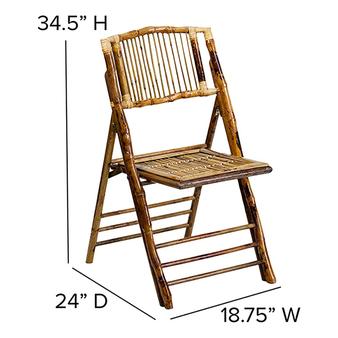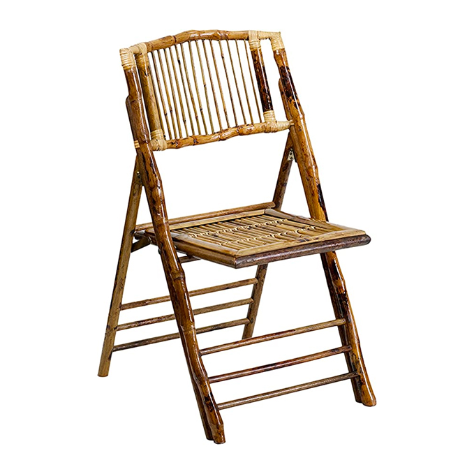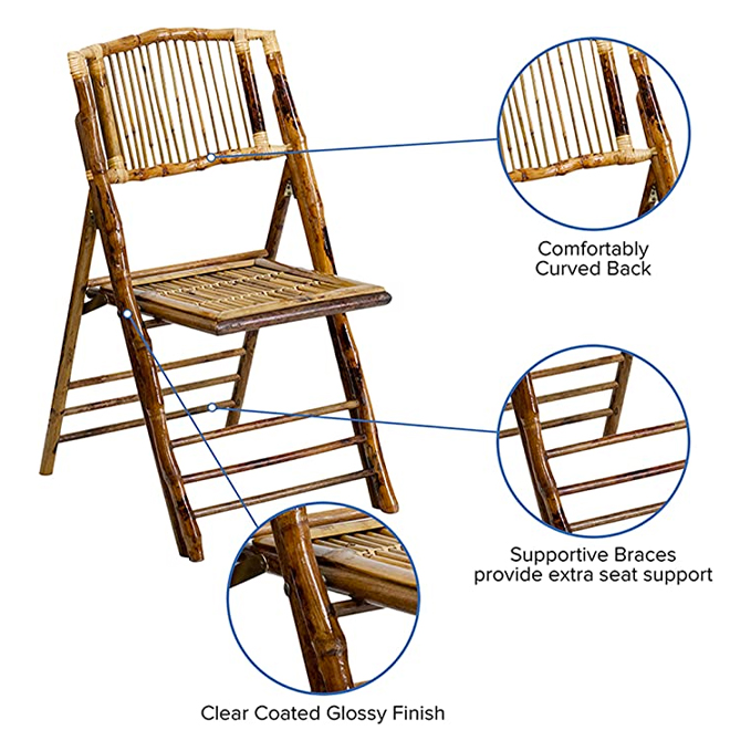 Step up your design game with this bamboo folding chair that can go from a modern high-rise to a bohemian bungalow. Mixing textures and colors gives any room a fresh feel and the natural finish of this chair gives it wonderful versatility Comfortably curved back Supportive Braces provide extra seat support, holds up to 300 lb. weight capacity