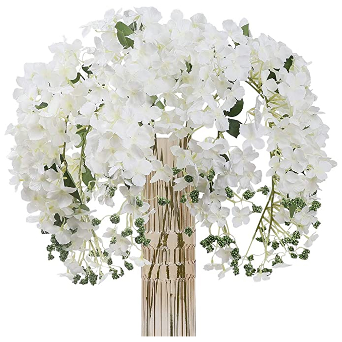 Artificial Silk Hydrangea Flowers Long Stems (White)