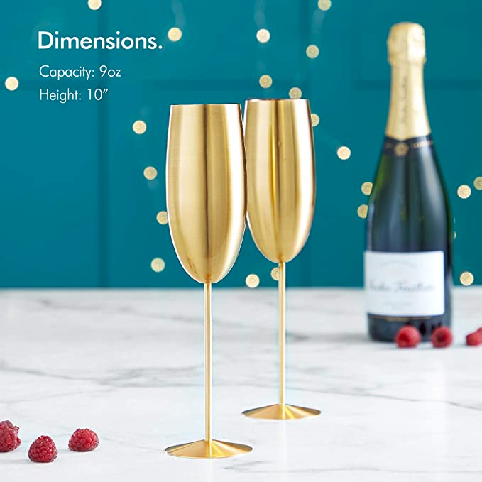 Champagne Flutes, Gold Glasses, Stainless Steel Shatterproof